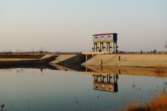 衡水湖边 2010.02.19 天气已经变暖,很多人都到河边来玩。湖中有些地方的冰化开了,大部分还冻着。夕阳照下,桥洞中的光彩很漂亮。 靠近岸边的湖水已经化开,离岸边较远的湖中还冻着冰,胆子大的仁兄在冰面上钓鱼。远处是湖边新修的建筑。 以下两张是堤岸的两边。拍照的时间基本相同。一边是无际的冰冻,而水闸这边已经没有冰了,感觉更像秋天的景色。 回家时着急赶路,错过了日落。落日后的余辉也很绚丽。 日落月当空。 这一张想把月亮纳进图中,可是最终月亮太小,画面上方太空了。感觉到结构不够好。